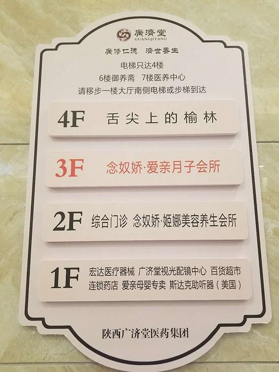 界面新闻查询发现,微信公众号“榆林广济堂”曾在2017年8月10日推出文章《坐月子就来广济堂念奴娇·爱亲月子会所:专业值得信赖!》称,“念奴娇·爱亲月子会所是陕西广济堂医药集团倾心打造的母婴关爱项目之一。”