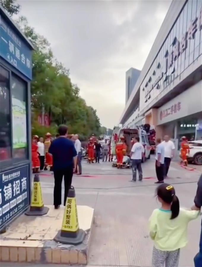 网络视频显示,一栋建筑物的一处门面内,金属架子坍塌下来,多辆消防车赶到现场处置。消防员站在发生坍塌的商铺门口,劝说过路市民快速离开现场,一名伤者被消防员抬上救护车。